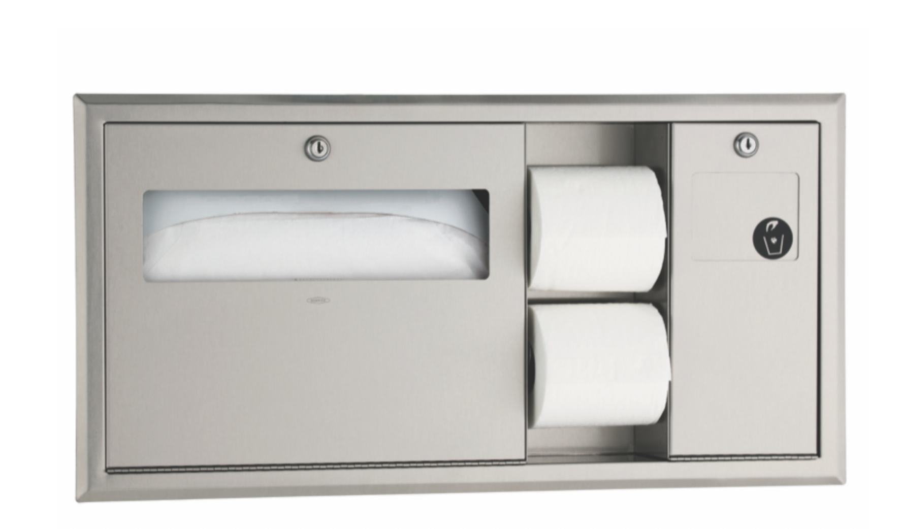 Bobrick B-3092 Recessed-Mounted Toilet Tissue, Seat-Cover Dispenser and Waste Receptacle