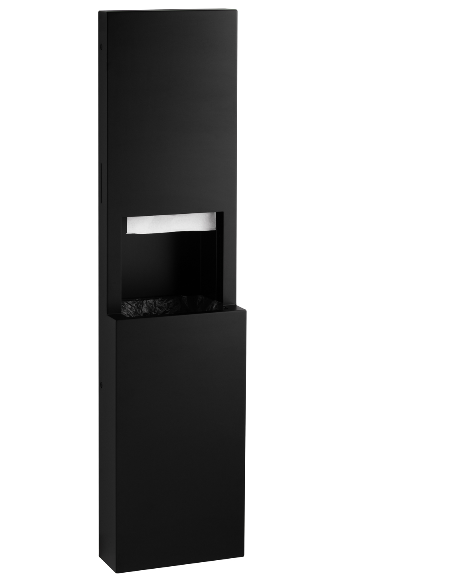 Bobrick B-9944.MBLK Semi-Recessed Paper Towel Dispenser and Waste Receptacle, Matte Black, 8.5-Gallon Waste