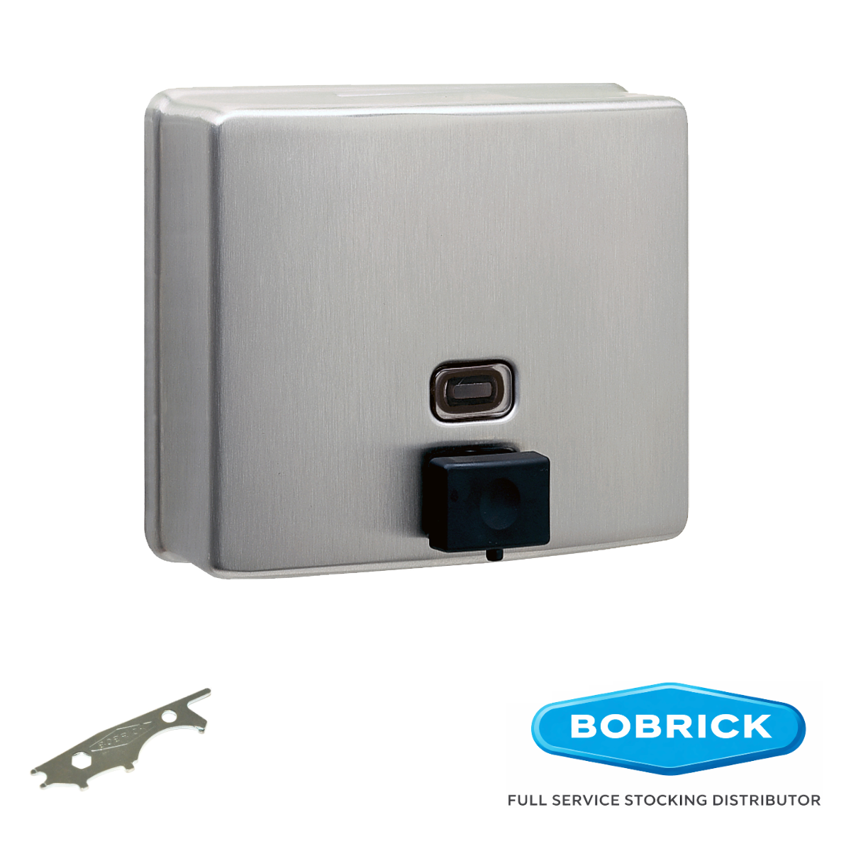 BACK ORDER UNTIL MARCHBobrick B-2111: ADA-compliant soap dispenser, <5 lbs force operation, 40-oz capacity, Type-304 stainless steel construction One-piece seamless design with vandal-resistant...