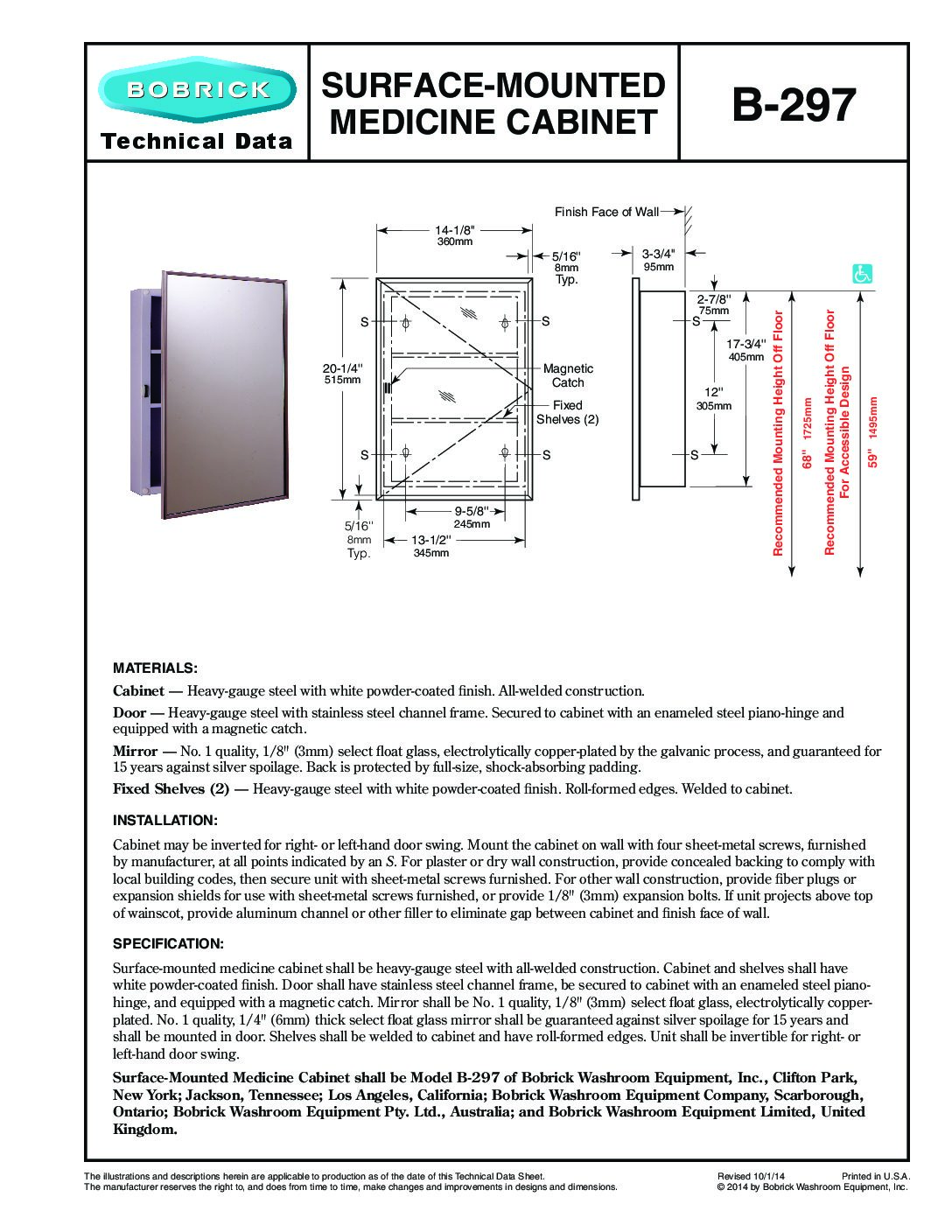 Perfect for hospitals, clinics or even your own home, the Bobrick B-297 White Powder-Coated Steel Surface Mounted Medicine Cabinet withPerfect for hospitals, clinics or even your own home, the Bobrick B-297 White Powder-Coated Steel Surface Mounted Medicine Cabinet with...