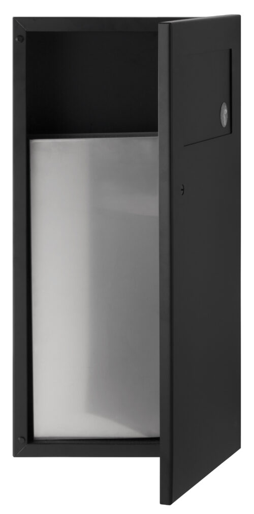 Toilet Partitions > Products > Bobrick > Bobrick B-35633.MBLK Matte Black Recessed Waste Receptacle with Disposal Door