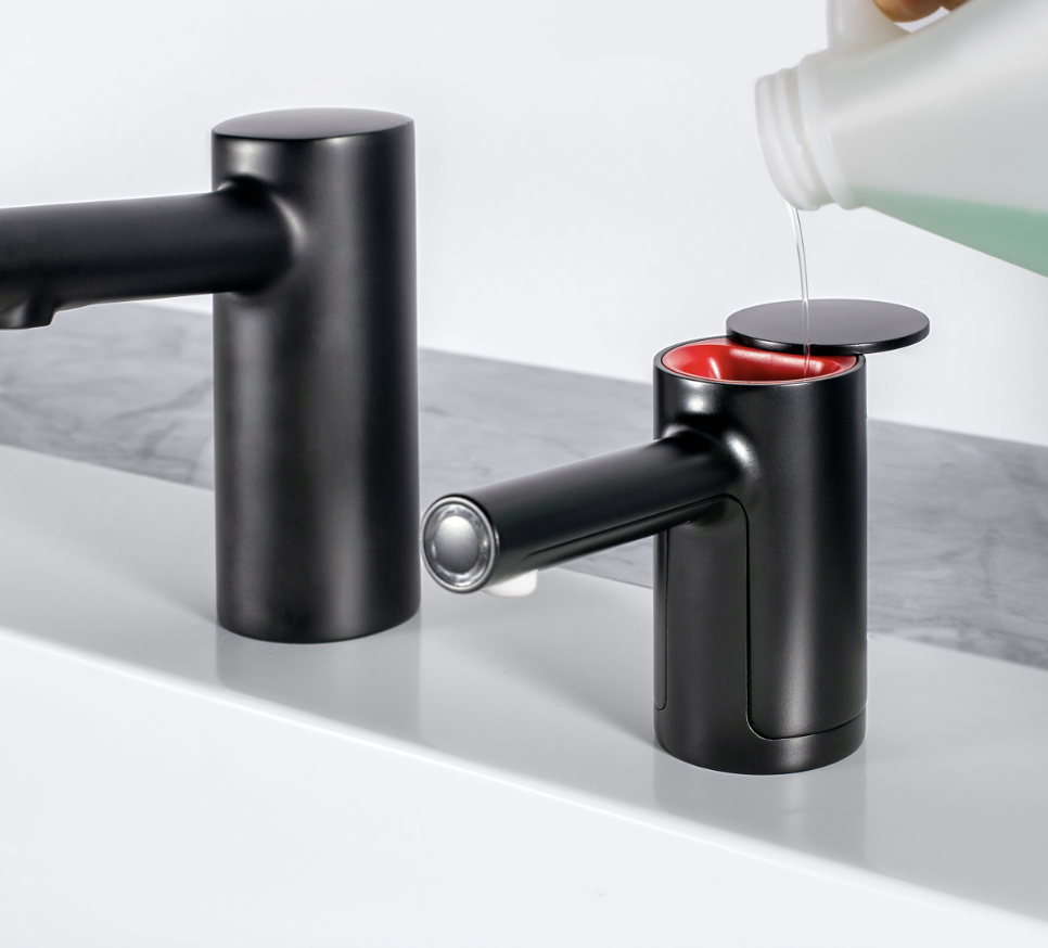 Automatic Fino Collection foam soap dispenser in a contemporary cylindrical design made with diecast zinc spout body. Touch-free dispenser minimizes cross-contamination for hygienic handwashing. Patented top-fill design reduces maintenance time contemporary cylindrical designand cost with easy above-counter filling. Dispenses economical bulk jug soap for significant cost-in-use savings and waste reduction. Low Soap Level Indicator informs maintenance when to refill. Adjustable soap control dial addresses patron preferences. New look pairs beautifully with matching Bobrick Fino Collection faucet and is available in five finishes for design continuity: polished chrome, brushed nickel, matte black, brushed brass and polished graphite.