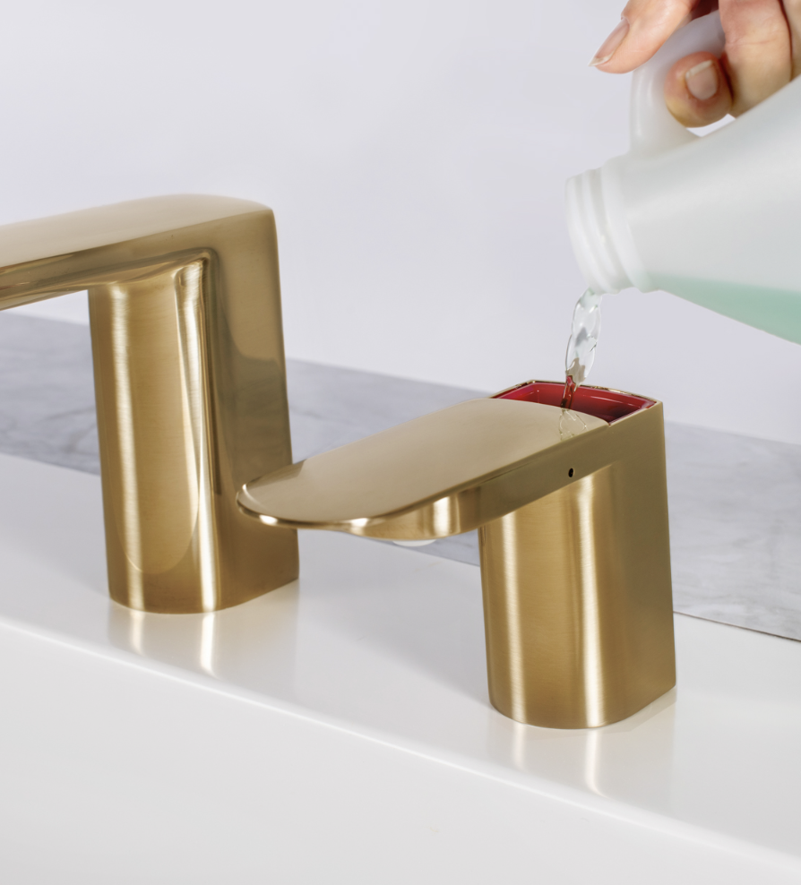 Bobrick B-950 Counter-Mounted Automatic Fino Collection Top-Fill Liquid Soap Dispenser, Brushed Brass