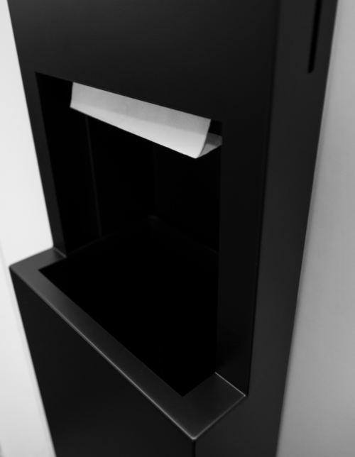Toilet Partitions > Products > Bobrick > Bobrick B-9944.MBLK Semi-Recessed Paper Towel Dispenser and Waste Receptacle, Matte Black, 8.5-Gallon Waste