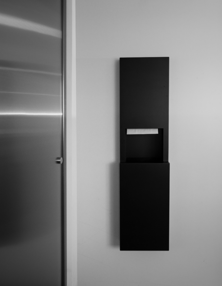 Toilet Partitions > Products > Bobrick > Bobrick B-9944.MBLK Semi-Recessed Paper Towel Dispenser and Waste Receptacle, Matte Black, 8.5-Gallon Waste