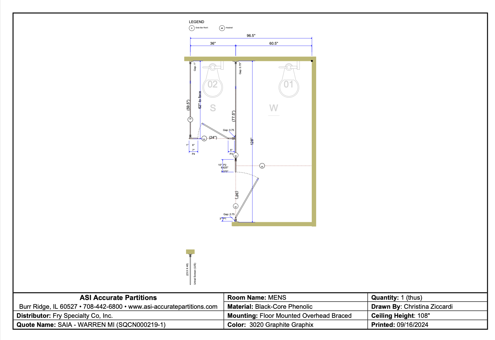 Toilet Partitions > Products > Configuration 17032575-1 – Phenolic – Accurate – Graphite Graphix – SAIA WARREN MI