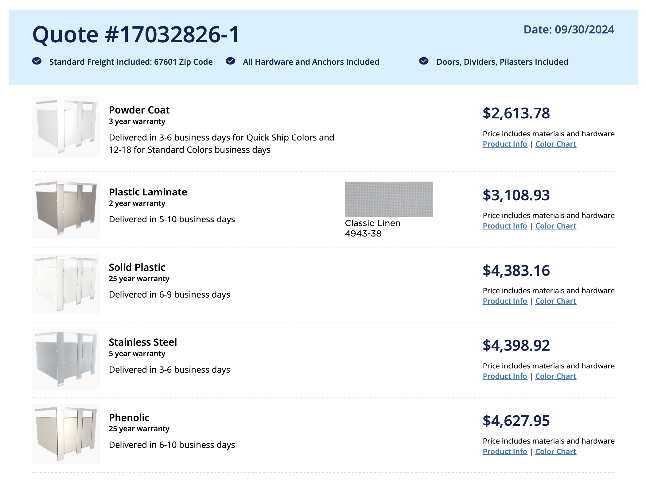 Click HereOr give us a call! Talk to a toilet partition design expert. We’ve been doing partitions since 1998.