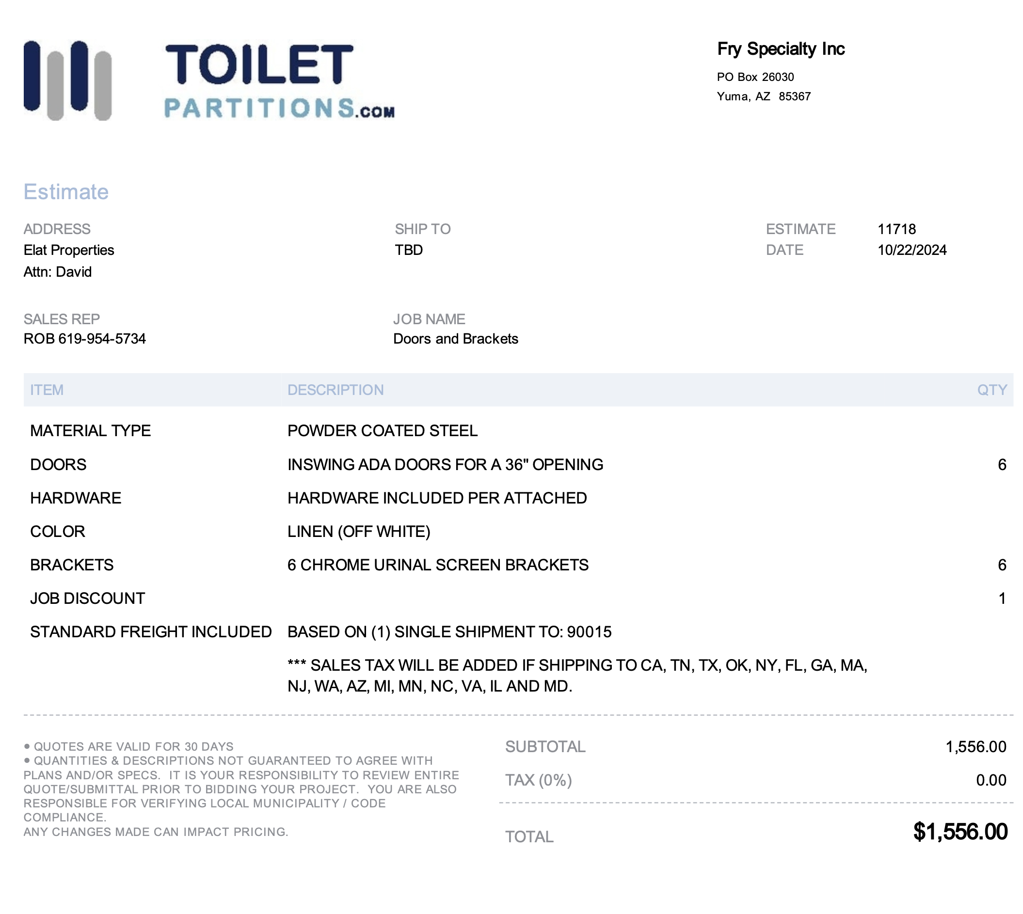 Toilet Partitions > Products > Quote 11718 Doors and Hardware