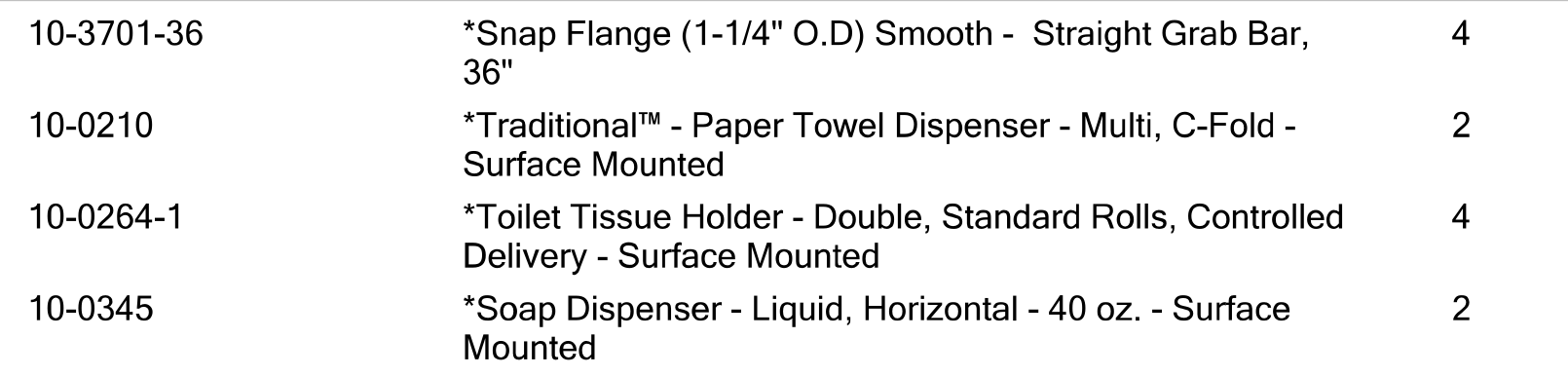 Toilet Partitions > Products > ASI Accs per image – Ref Quote 903201 / Order 242676 : Kaalaea Construction – Captain Cook HI, 96704