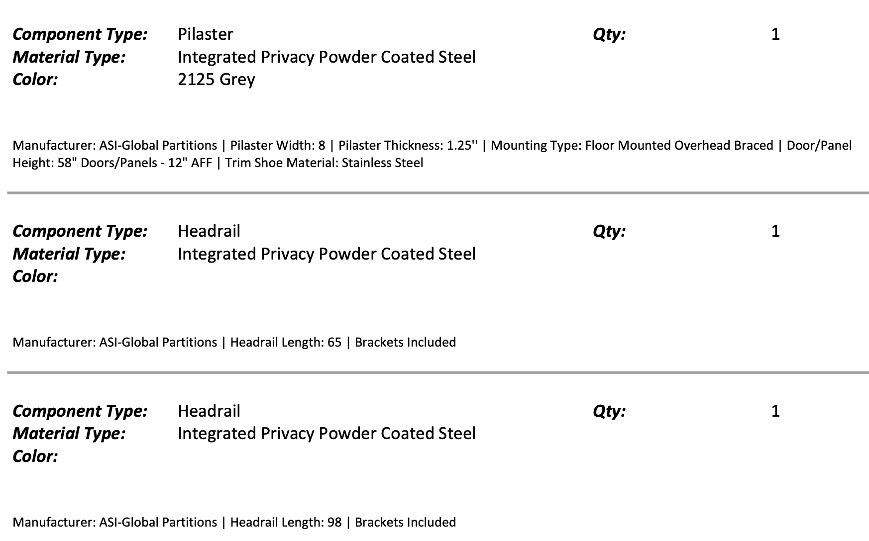 Powder Coated Steel Commercial Bathroom Partitions – Quote 906752 Parts