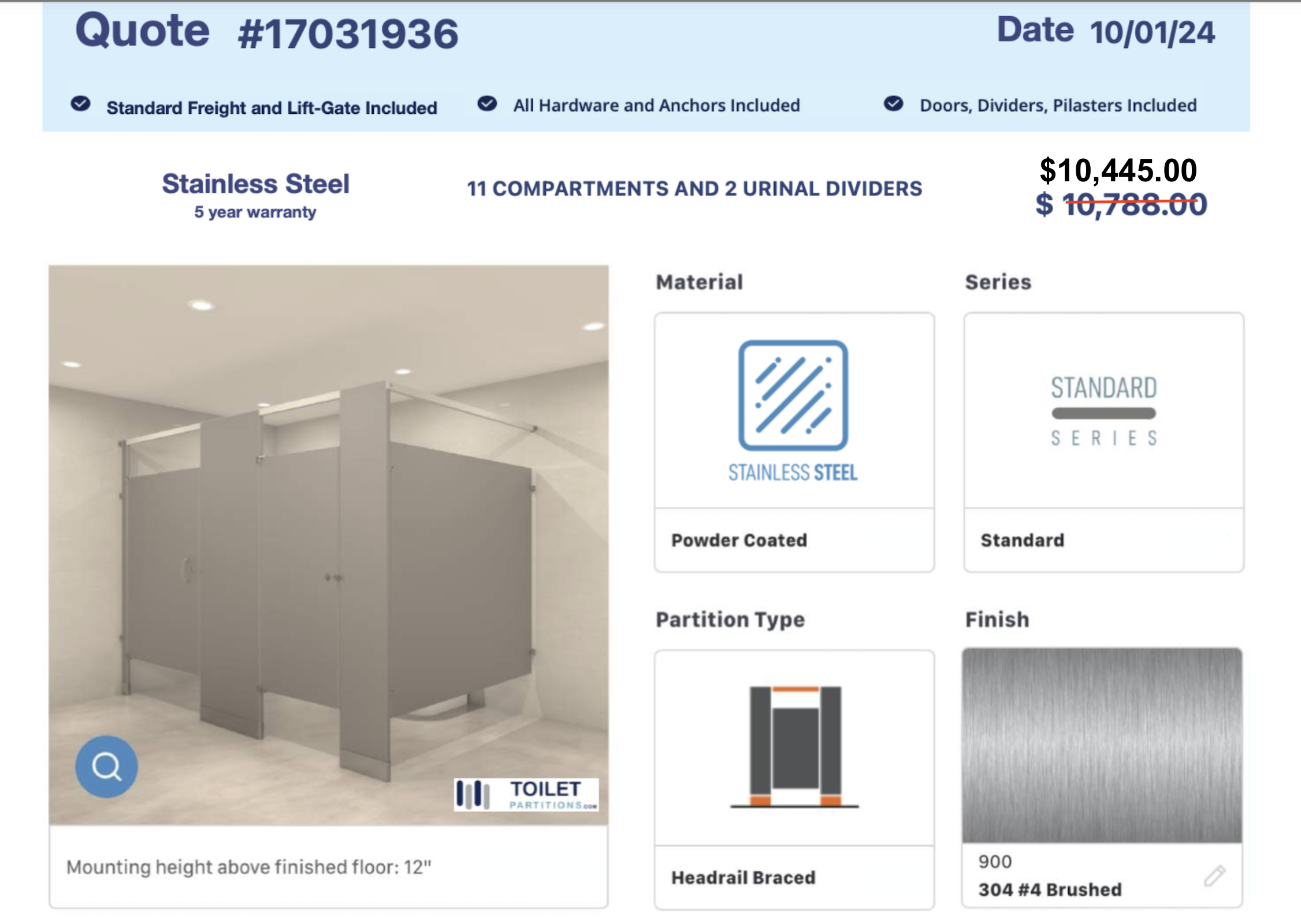 11 COMPARTMENTS AND 2 URINAL DIVIDERS