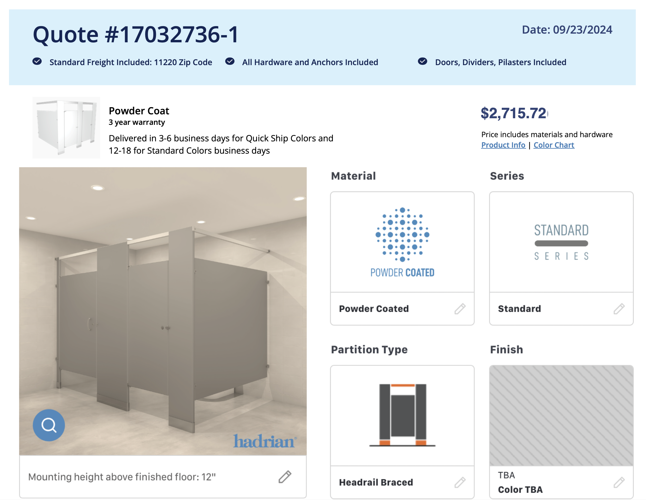 (833) 759-0136Quote 17032736-1 – Powder Coat – Color TBD