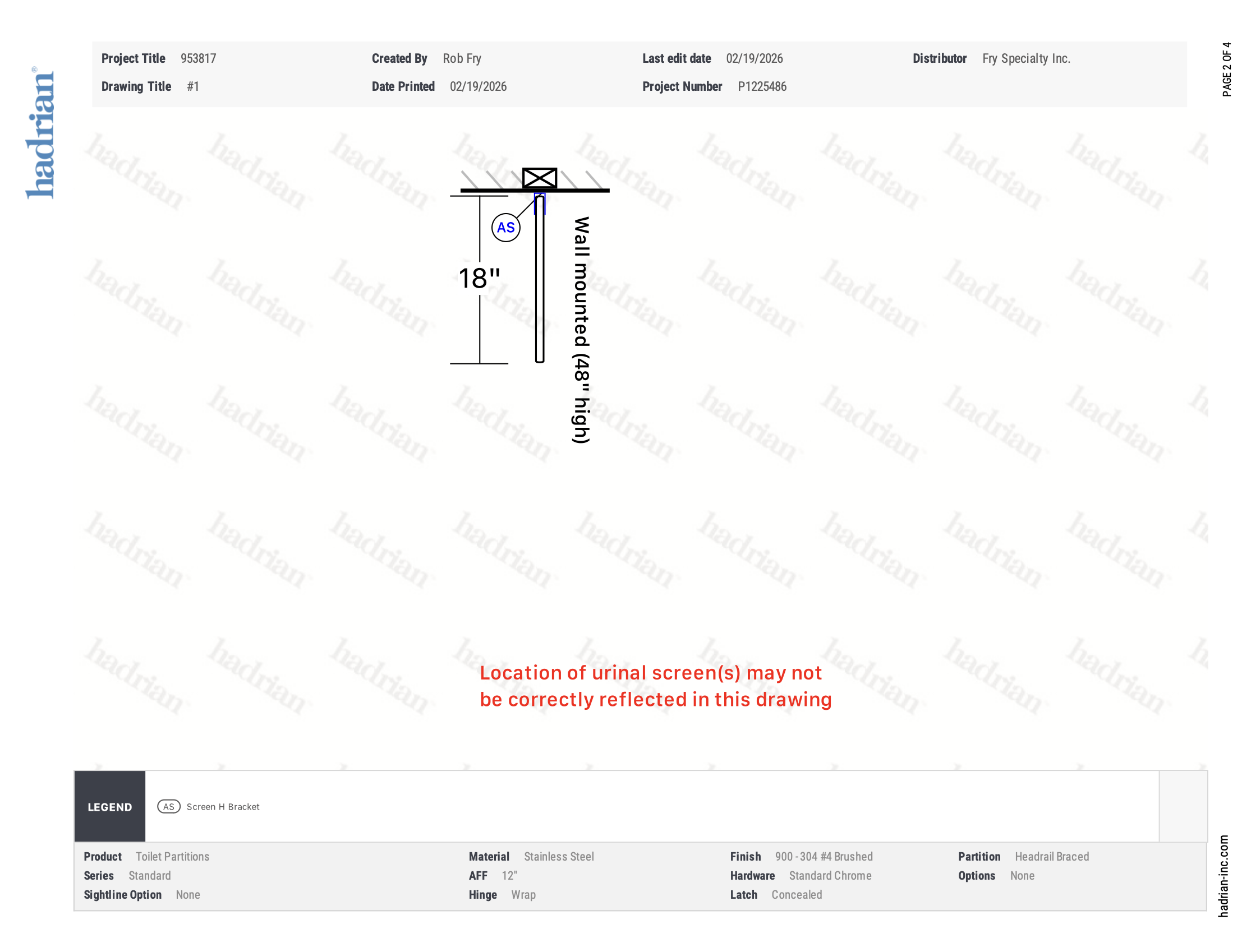 * toiletpartitions.com and Fry Specialty Inc. is not responsible for code compliance. We recommend that you confirm with an architect or local authorities that materials and drawing meet all applicable codes